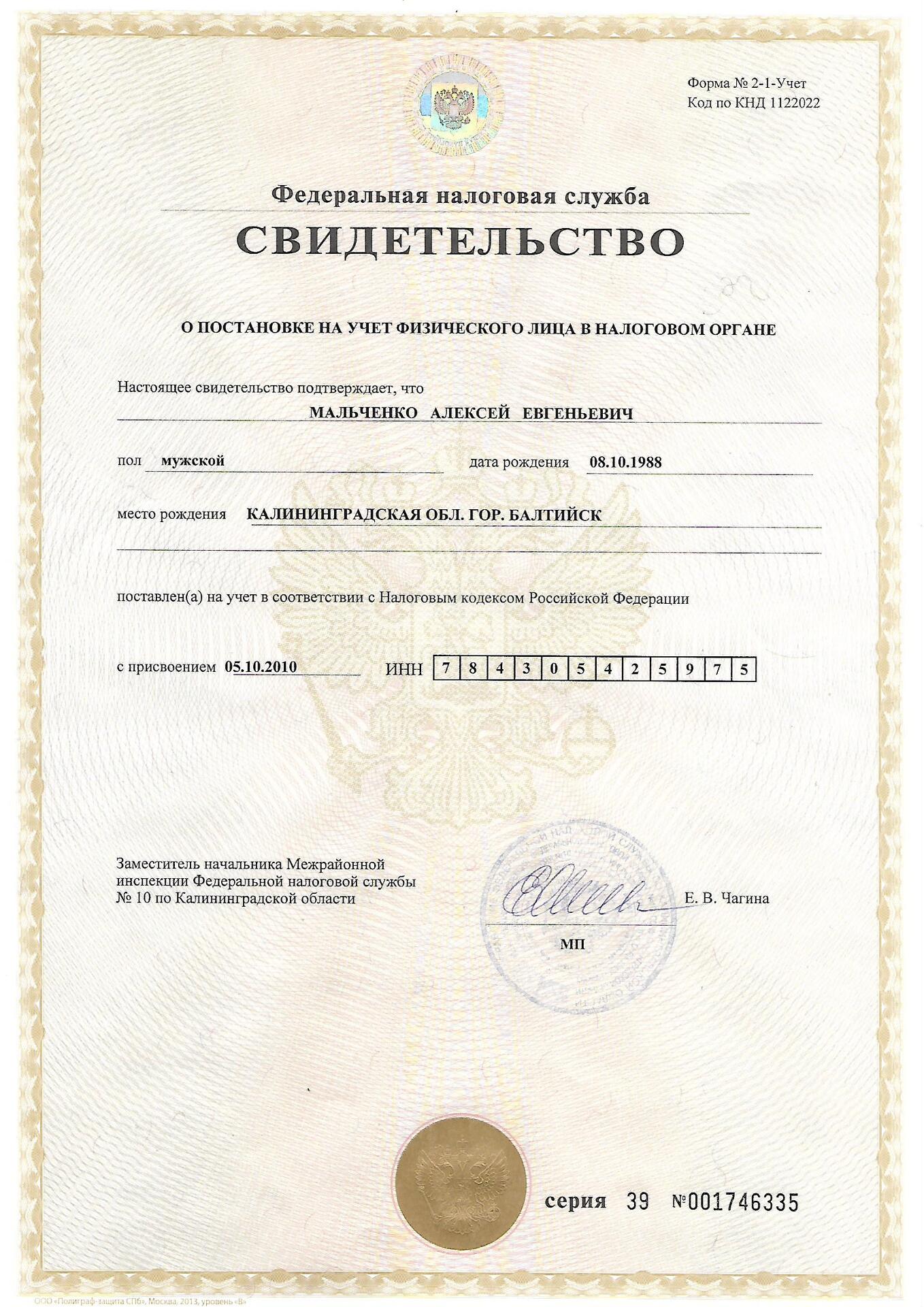 ИНН: 3901010786
