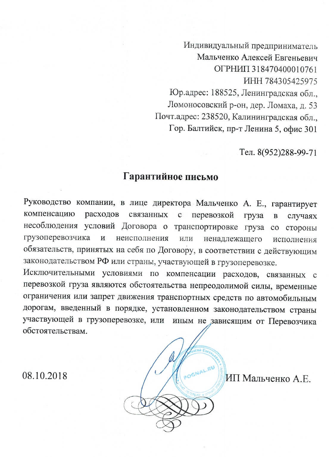 Юр. адрес: 188525, Лен.обл. Ломоносовский р-н, дер. Ломаха, дом 53