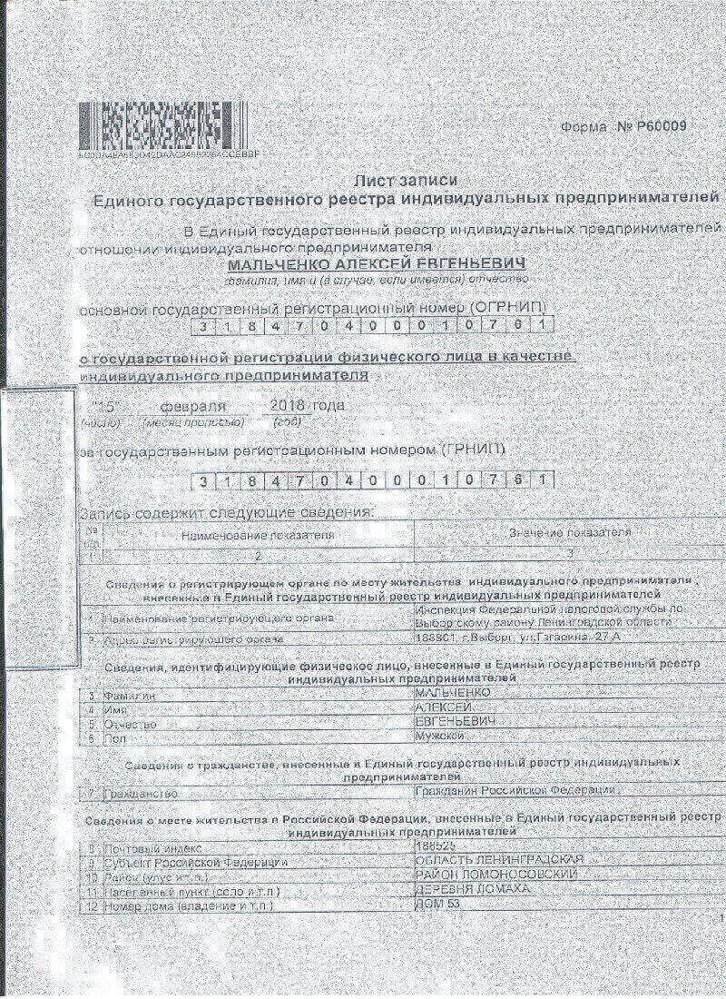 Индивидуальный предприниматель Мальченко Алексей Евгеньевич